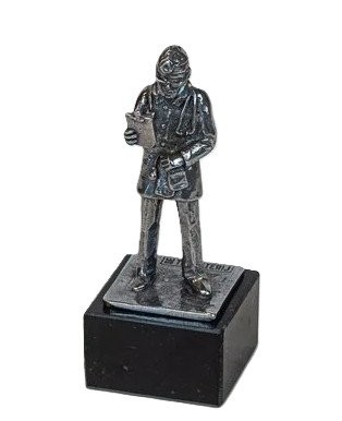 Dit gedetailleerde tinnen beeldje stelt een arts voor in een herkenbare houding, compleet met doktersjas, stethoscoop en clipboard. Een krachtig en stijlvol symbool van zorg, kennis en toewijding.