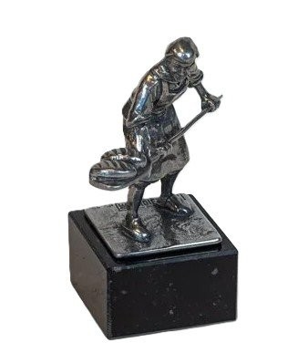 Dit prachtige tinnen beeldje stelt een traditionele bakker voor, met een houten schieter in de hand en versgebakken brood op de schep. Een perfecte afbeelding van het traditionele bakkersvak.