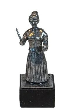 Laat muziek en vakmanschap samenkomen met dit prachtig vervaardigde tinnen beeldje van een dirigente. Dit sierlijke figuur toont een vrouw in klassieke dirigeerhouding, met baton in de hand, klaar om haar muzikanten aan te sturen.