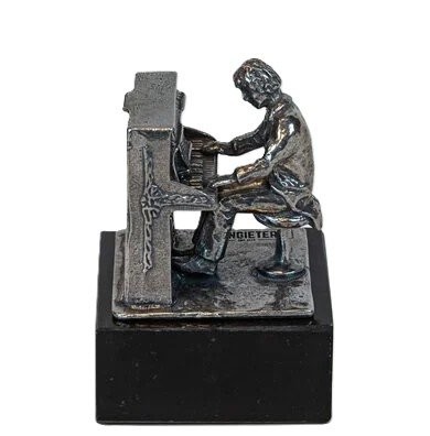 Breng muzikaliteit tot leven met dit unieke tinnen beeldje van een pianist aan een klassiek orgel. Elk detail, van de toetsen tot de houding van de muzikant, is met zorg met de hand gegoten en afgewerkt in hoogwaardig tin